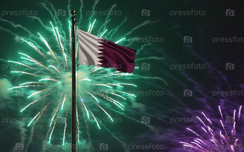 Государственный флаг Катара независимость, фоновый фейерверк. генеративный AI