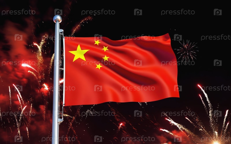 ИИ генеративный национальный флаг независимости Китая, фон с фейерверком
