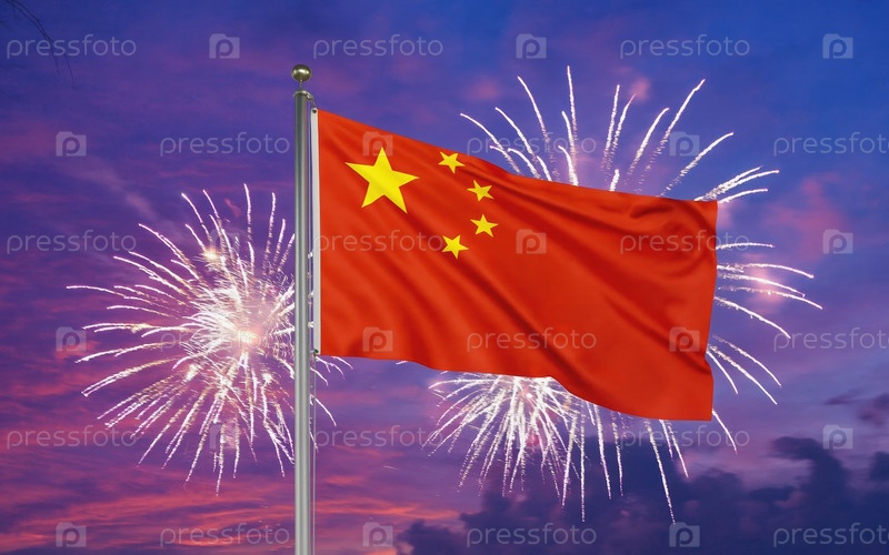 ИИ генеративный национальный флаг независимости Китая, фон с фейерверком