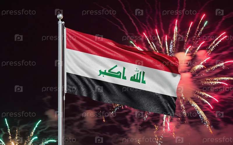 AI генеративный Национальный флаг Независимости государства Ирак, фон с фейерверком