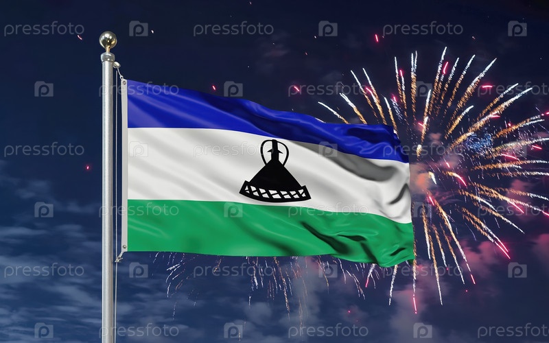 AI Generative Флаг национальной независимости Лесото, фейерверк на заднем плане