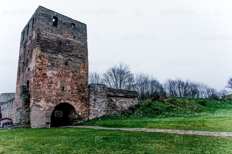 Ивангородская крепость в старом городе, старая каменная достопримечательность, пейзаж укрепления здания, Россия