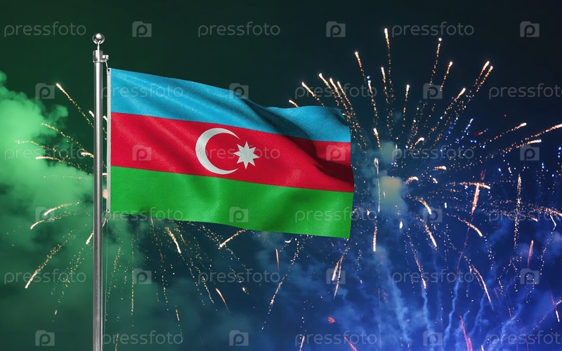 Генеративный ИИ Национальный флаг Независимости Азербайджана, Фейерверк на заднем плане