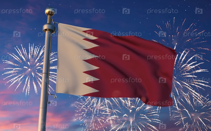 AI generative Национальный флаг независимости Бахрейна, фон с фейерверком