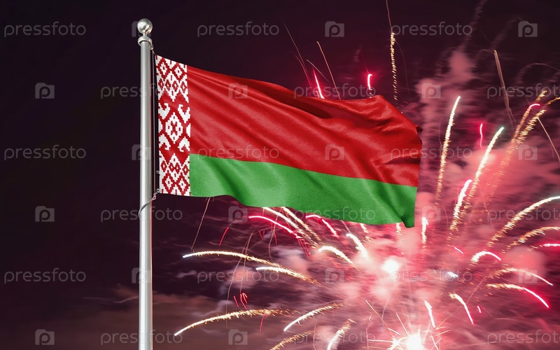 AI генеративный Национальный флаг Независимости Беларуси, фон с фейерверком