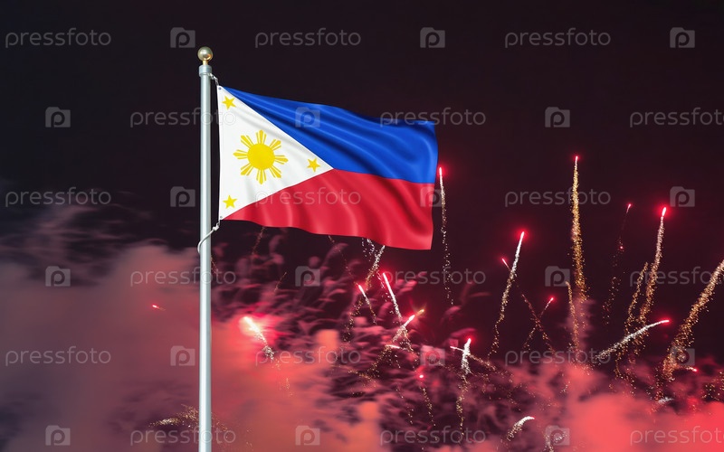 Национальный флаг независимости Филиппин, фоновый фейерверк