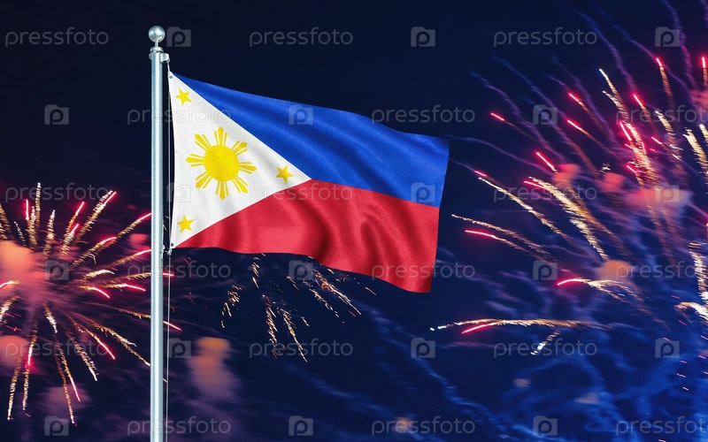Национальный флаг независимости Филиппин, фоновый фейерверк
