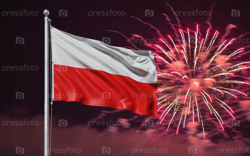 Национальный флаг независимости Польши, фоновый фейерверк