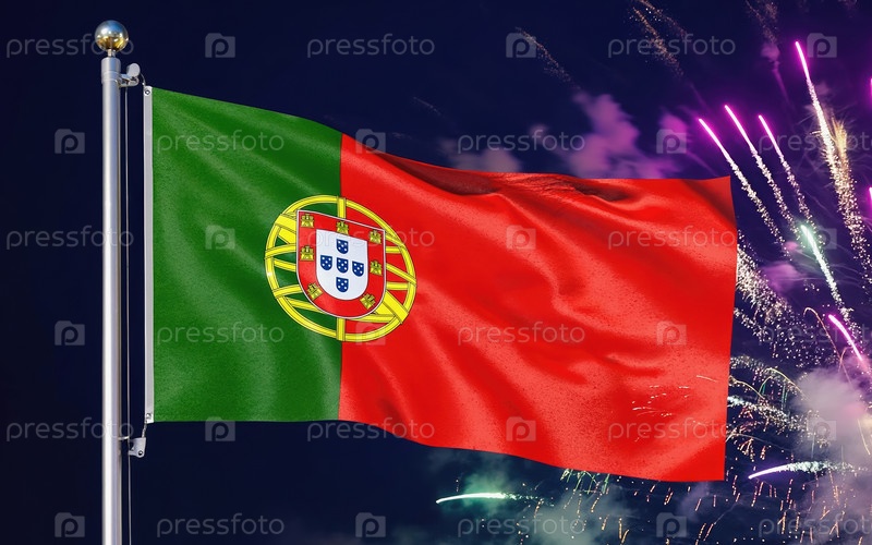 Национальный флаг независимости Португалии, фоновый фейерверк