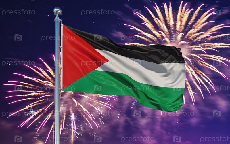 Национальный флаг Независимости Государства Палестина, фоновый фейерверк