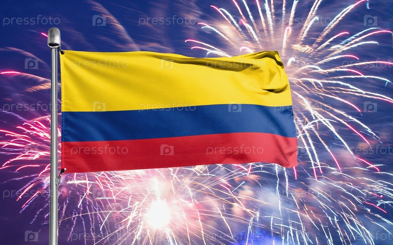 AI генеративный Национальный флаг Независимости Колумбии, фон с фейерверком