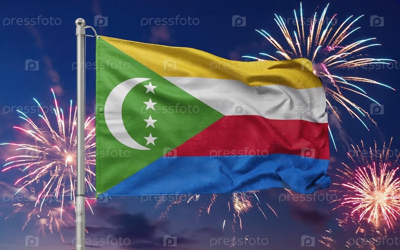 AI генеративный национальный флаг независимости государства Коморские острова, фоновый фейерверк