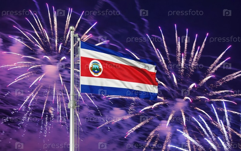 AI генеративный Национальный флаг Независимости Коста-Рики, фон с фейерверком