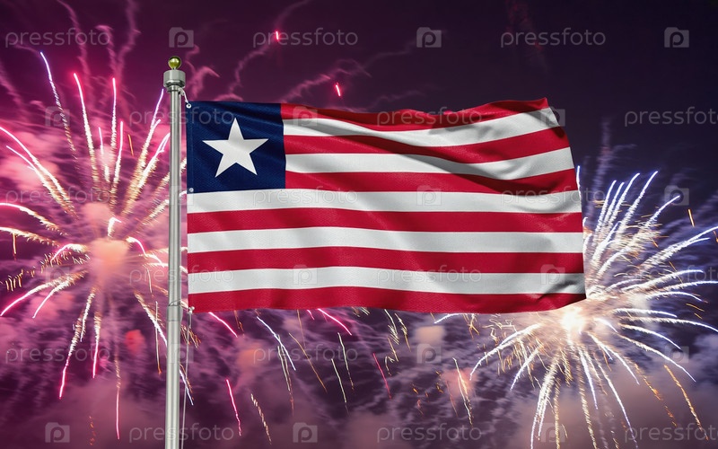 AI генеративный Национальный флаг независимости Либерии, фон с фейерверком