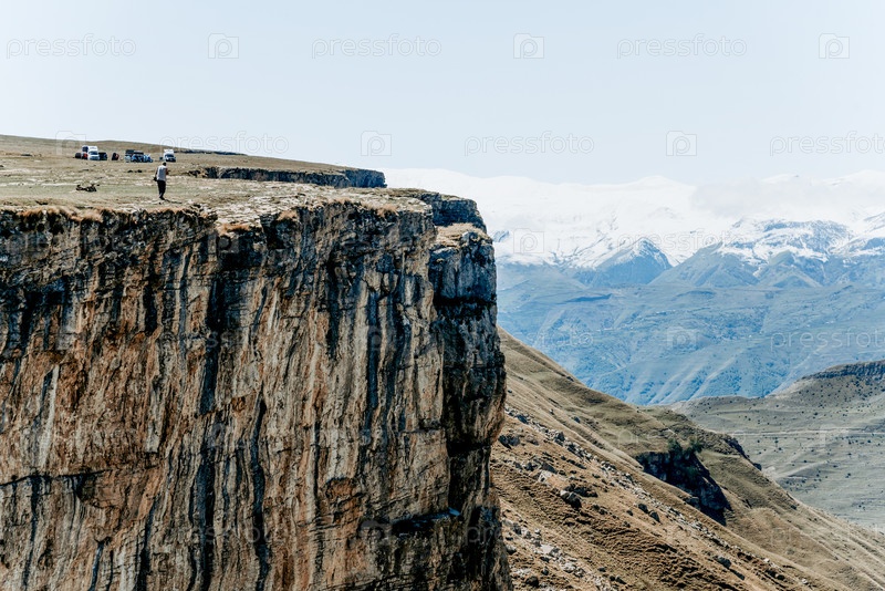 Пейзаж гор Дагестана, горный хребет в туманном лету России