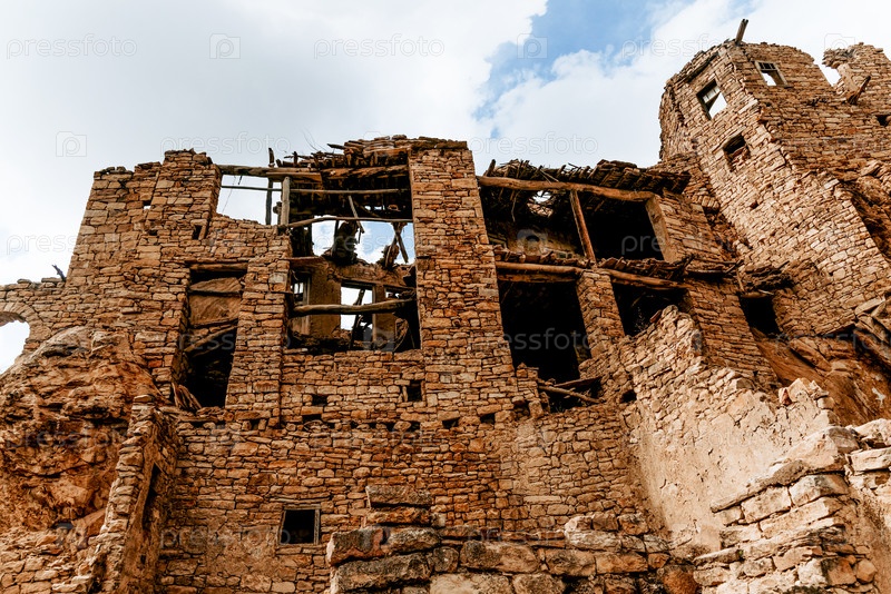 Крепость Аул Гамсутль в старом городе, старая каменная достопримечательность, пейзаж укрепления здания, Дагестан, Россия