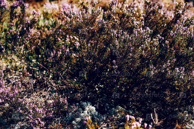 Дикие кустарники растения с маленькими красочными лиловыми цветами диких цветов в плотном природном лесном саду