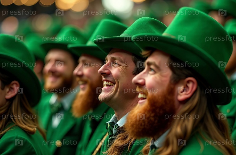 Люди в зеленых ирландских костюмах на фестивале Дня Святого Патрика