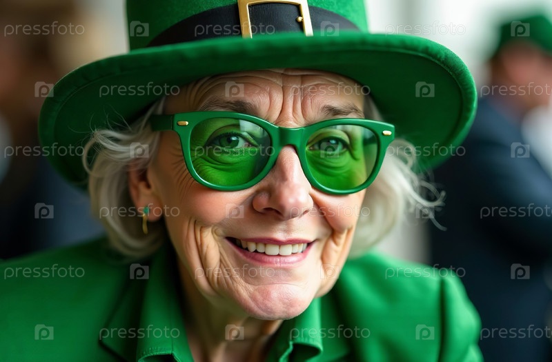 Взрослая женщина в классическом зеленом ирландском костюме на День Святого Патрика