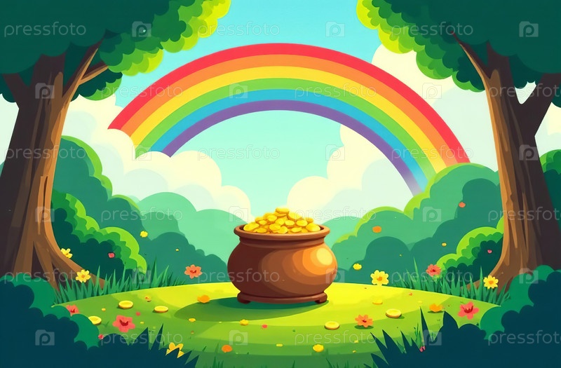 Открытка на День Святого Патрика, Золото из кастрюли, Шляпа, Лепрехаун, Флаг Ирландии