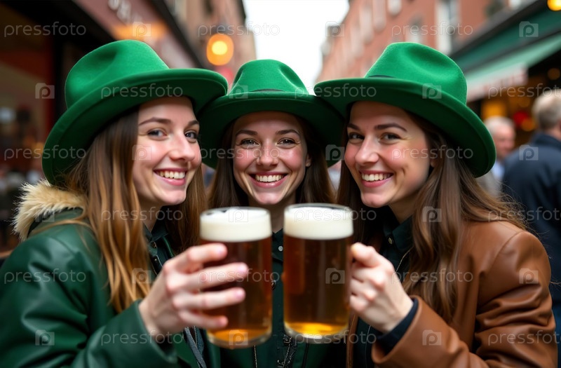 Три женщины мигают пивными кружками на Фестивале Святого Патрика