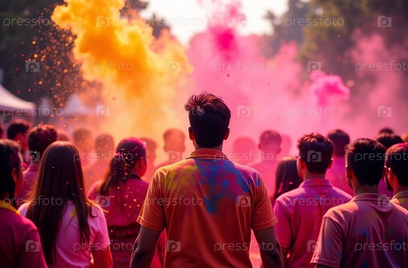 Люди в брызгах красочного Холи рисуют индийский весенний фестиваль