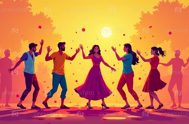 Люди в брызгах красочного Холи рисуют индийский весенний фестиваль