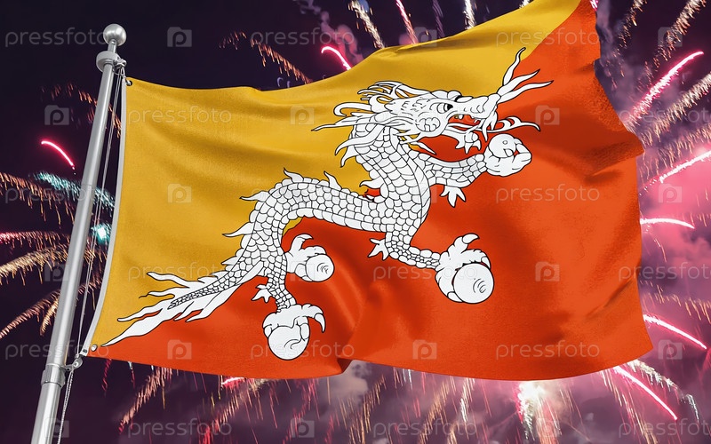 ИИ генеративный Национальный флаг Независимости Бутана, фон с фейерверком