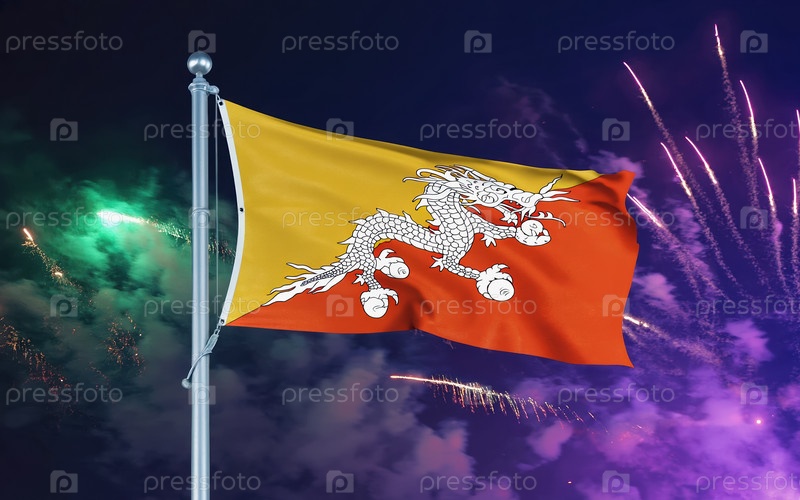 ИИ генеративный Национальный флаг Независимости Бутана, фон с фейерверком