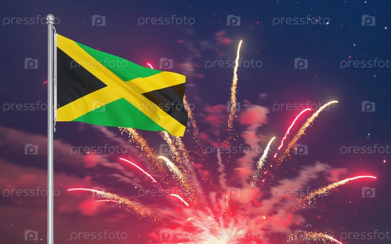 Генеративный национальный флаг Ямайки Независимость, фоновый фейерверк
