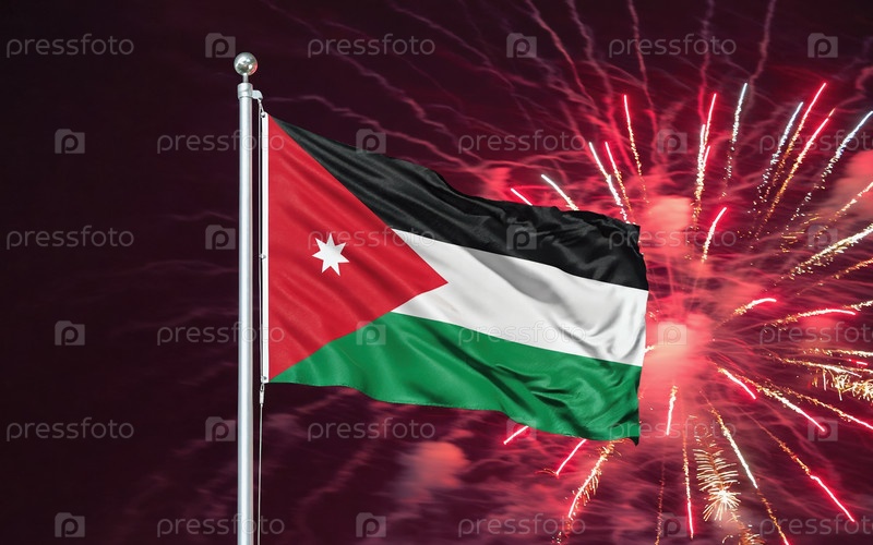 AI генеративный Национальный флаг независимости Иордании, фон с фейерверком