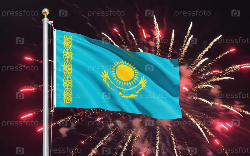 ИИ генеративный Национальный флаг Независимости Казахстана, фон с фейерверком