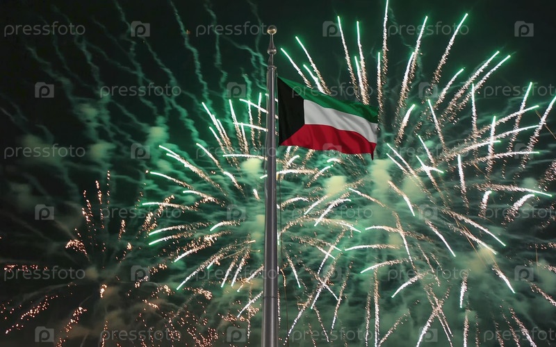 ИИ генеративный Национальный флаг Независимости Кувейта, фон с фейерверком