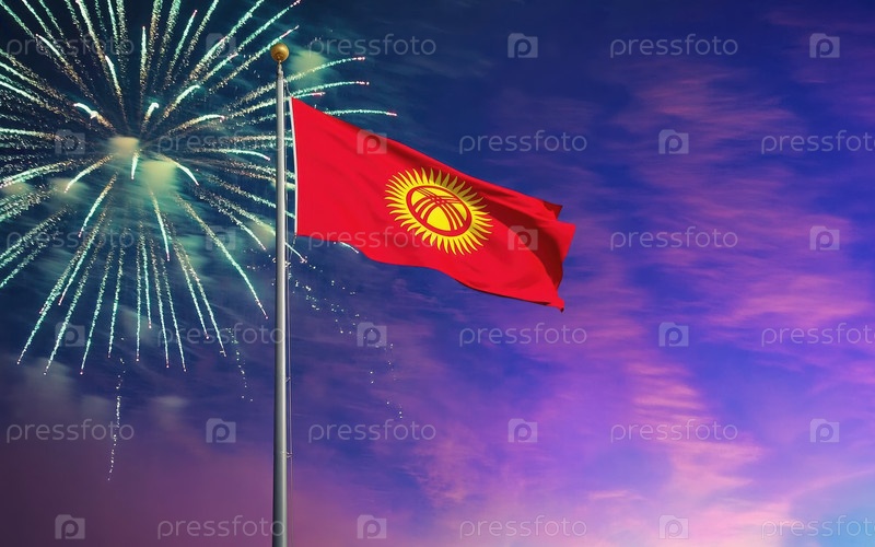 AI генеративный Национальный флаг Независимости Кыргызстана, фон с фейерверком