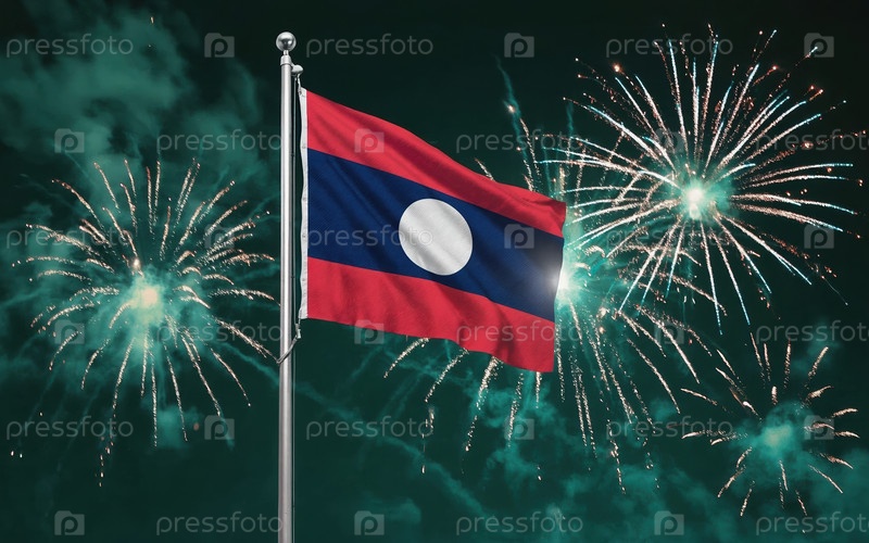 AI Генеративный Национальный флаг Лаоса Независимость, Фейерверк на заднем плане