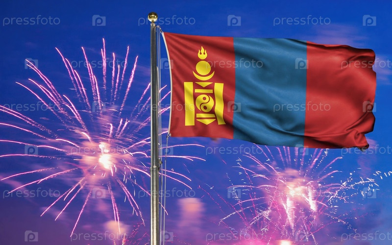 AI генеративный Национальный флаг Независимости Монголии, фон с фейерверком