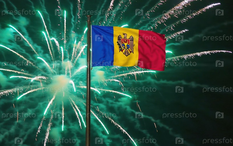 AI генеративный Национальный флаг Независимости Молдовы, фон с фейерверком