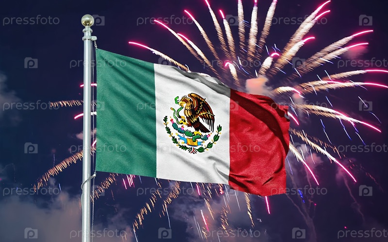 Генеративный национальный флаг мексиканской независимости, фоновый фейерверк