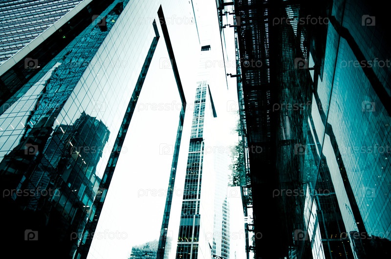 Стеклянные высокие многоэтажные здания Московских городских небоскребов в центре города