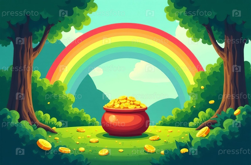 Открытка на День Святого Патрика, Золото из кастрюли, Шляпа, Лепрехаун, Флаг Ирландии