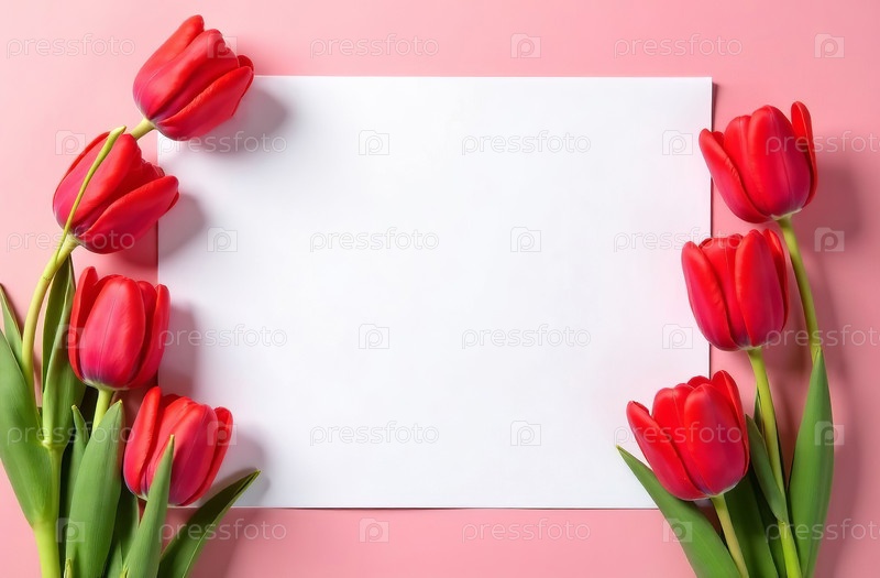 AI Generative Postcard с копировальным пространством для текста на розовом фоне с цветами 8 марта