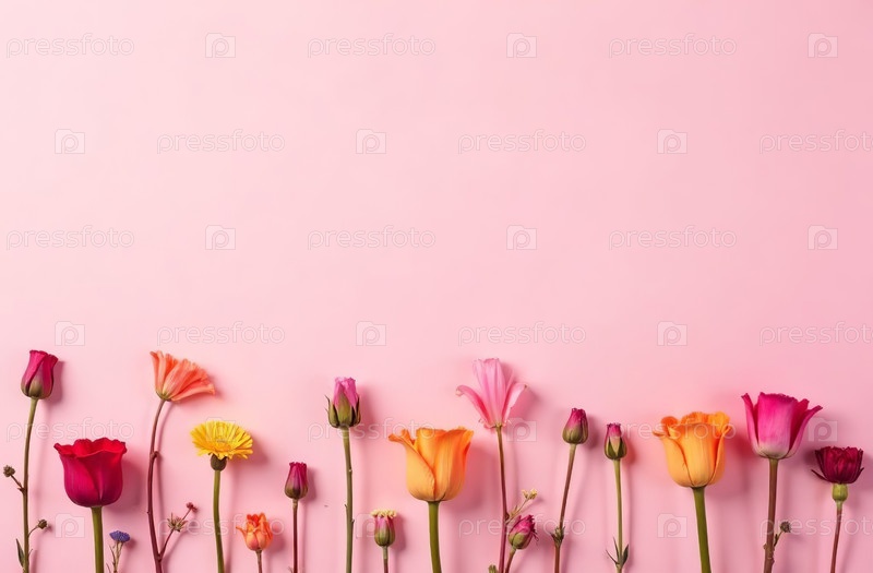 AI Generative Postcard с копировальным пространством для текста на розовом фоне с цветами 8 марта