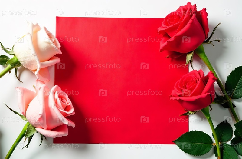 AI Generative Postcard с копировальным пространством для текста на красном фоне с цветами 8 марта