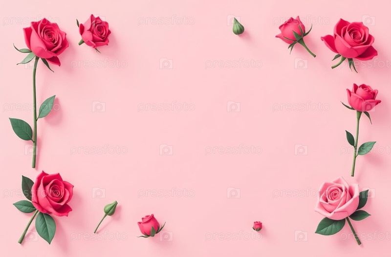 AI Generative Postcard с копировальным пространством для текста на розовом фоне с цветами 8 марта