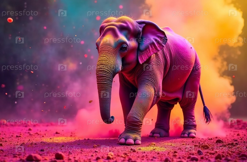 Слоновые спреи Красочные животные Холи Индийский весенний ИИ генеративный фестиваль