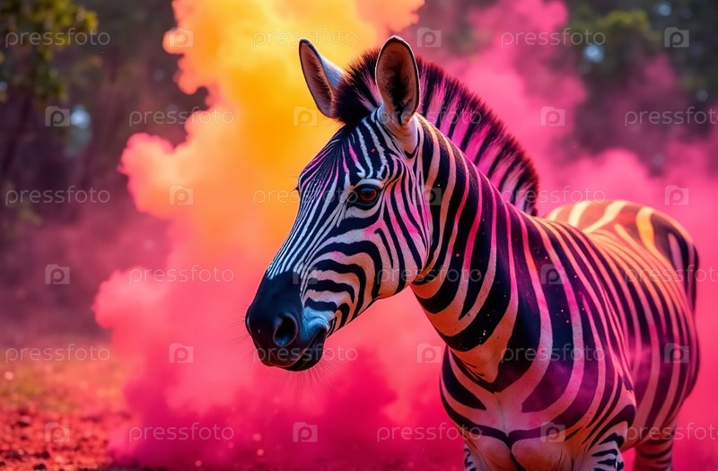 Животный тигр распылял красочные цвета Холи, индийского весеннего фестиваля