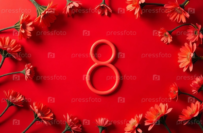 Открытка к Международному женскому дню 8 марта на красном фоне