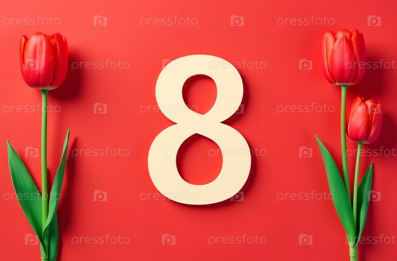 Открытка к Международному женскому дню 8 марта на красном фоне