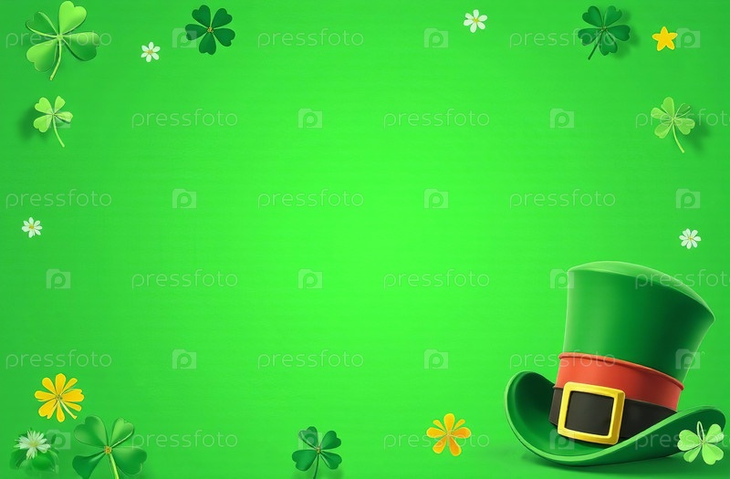 Зеленый фон для открытки на День Святого Патрика с шляпой и клевером