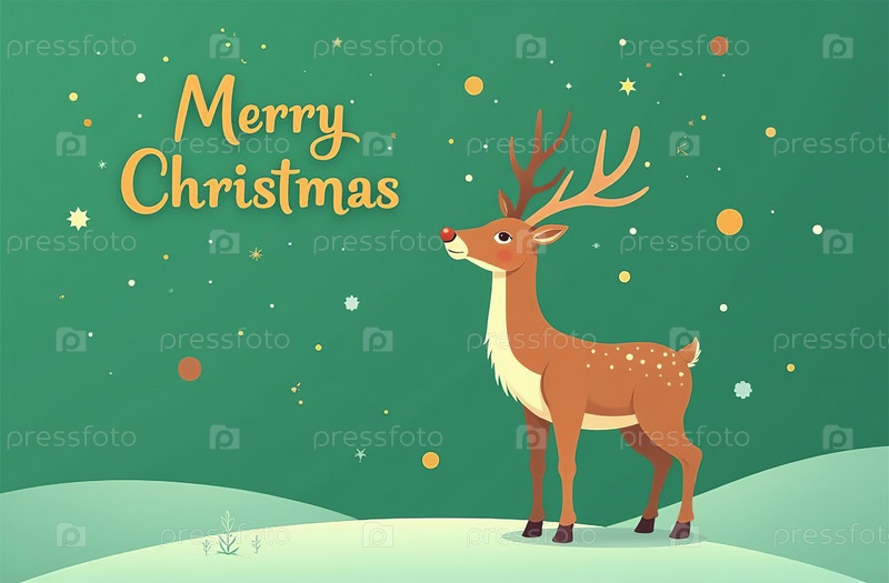 Счастливая рождественская открытка на зеленом фоне, Новый год